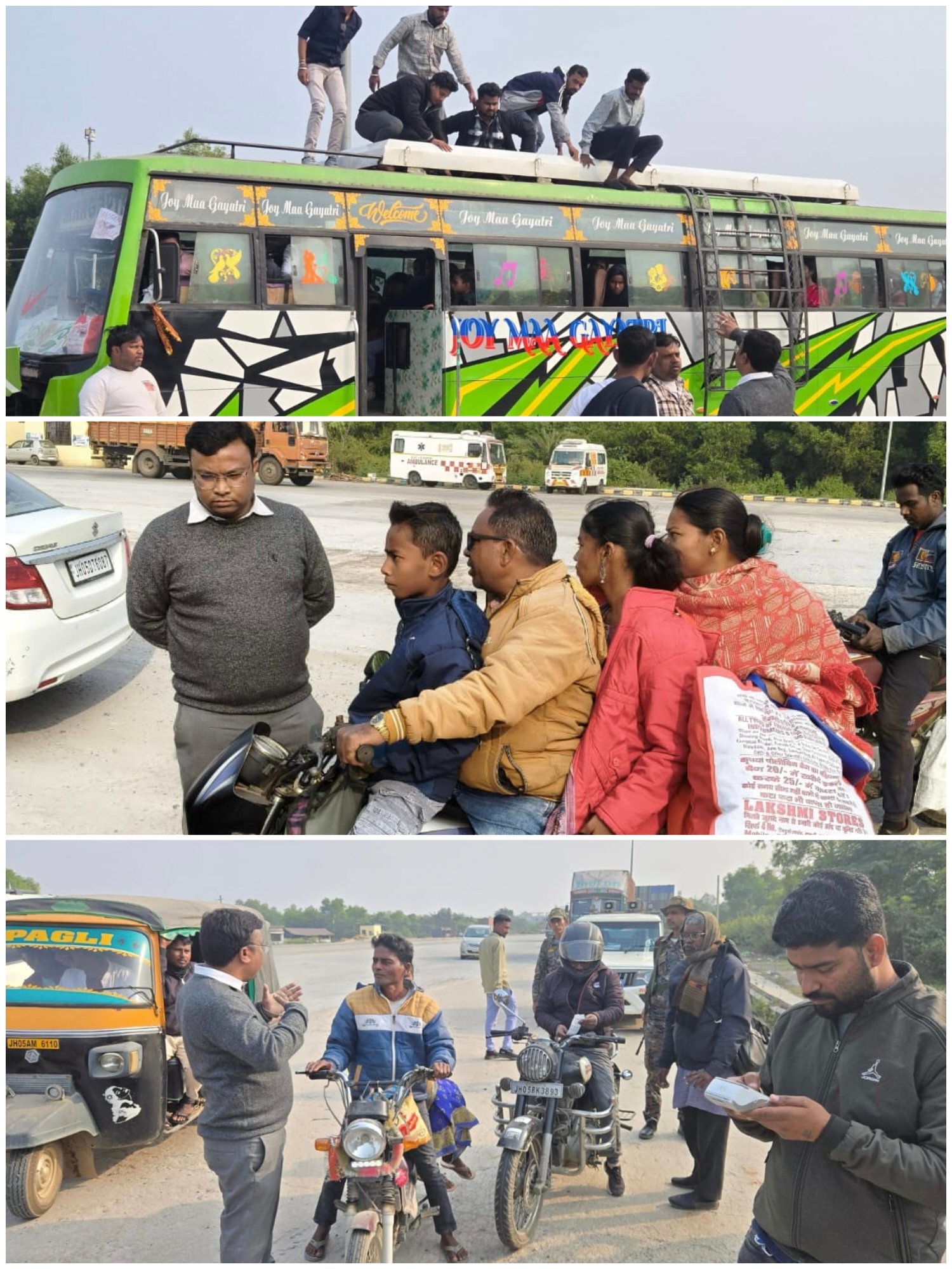 मोटरयान निरीक्षक (एमवीआई) सूरज हेंब्रम ने कहा कि ग्रामीण क्षेत्रों में भी अब परिवहन विभाग की जांच लगातार जारी रहेगी। उन्होंने कहा कि ग्रामीण क्षेत्रों में सड़क हादसे अधिक हो रहे हैं। इन हादसों को कम करने के लिए ओवरलोडिंग और हेलमेट न पहनने वालों पर सख्ती बरती जा रही है। उन्होंने विशेष रूप से हेलमेट के प्रति जागरूकता पर जोर दिया और आम जनता से अपील की कि वे घरों से ही हेलमेट पहनकर निकलें ताकि किसी भी दुर्घटना की स्थिति में जान-माल का नुकसान रोका जा सके।