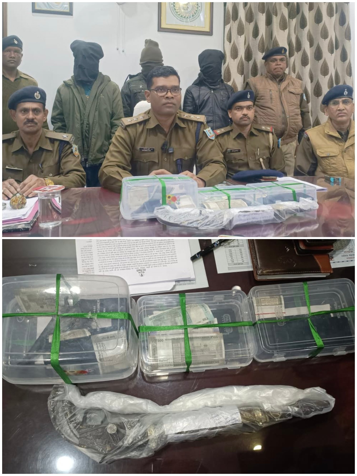 पुलिस द्वारा हथियारों के वैध कागजात मांगने पर तीनों कोई संतोषजनक जवाब नहीं दे सके। इसके बाद पुलिस ने दोनों देशी कट्टे, जिंदा कारतूस, चार मोबाइल फोन, 7200 रुपये नकद और सिल्वर रंग की आल्टो कार (पंजीयन संख्या JH05BV-8505) को जब्त कर तीनों को गिरफ्तार कर लिया।