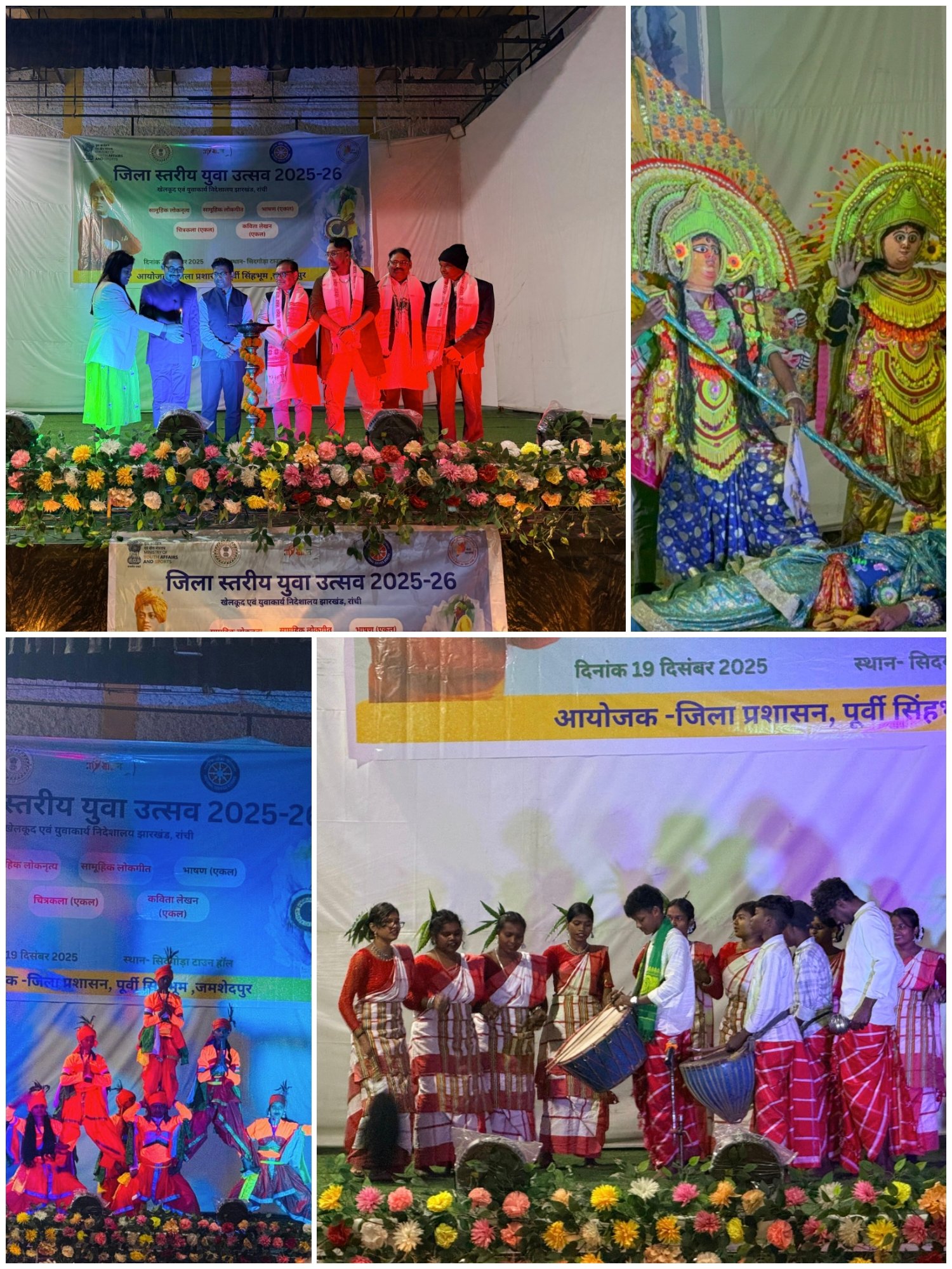 जमशेदपुर। स्वामी विवेकानंद की जयंती के अवसर पर शुक्रवार को पूर्वी सिंहभूम जिला में जिला स्तरीय युवा उत्सव 2025-26 का भव्य एवं रंगारंग आयोजन किया गया। यह कार्यक्रम युवा कार्यक्रम एवं खेल मंत्रालय, भारत सरकार के निर्देशानुसार खेलकूद एवं युवा कार्य निदेशालय झारखंड, जिला नेहरू युवा केंद्र संगठन, राष्ट्रीय सेवा योजना तथा जिला प्रशासन, पूर्वी सिंहभूम के खेल शाखा के संयुक्त तत्वावधान में सिदगोड़ा टाउन हॉल, जमशेदपुर में संपन्न हुआ। कार्यक्रम का शुभारंभ अतिथियों द्वारा संयुक्त रूप से दीप प्रज्वलित कर किया गया, जिससे आयोजन की औपचारिक शुरुआत हुई।