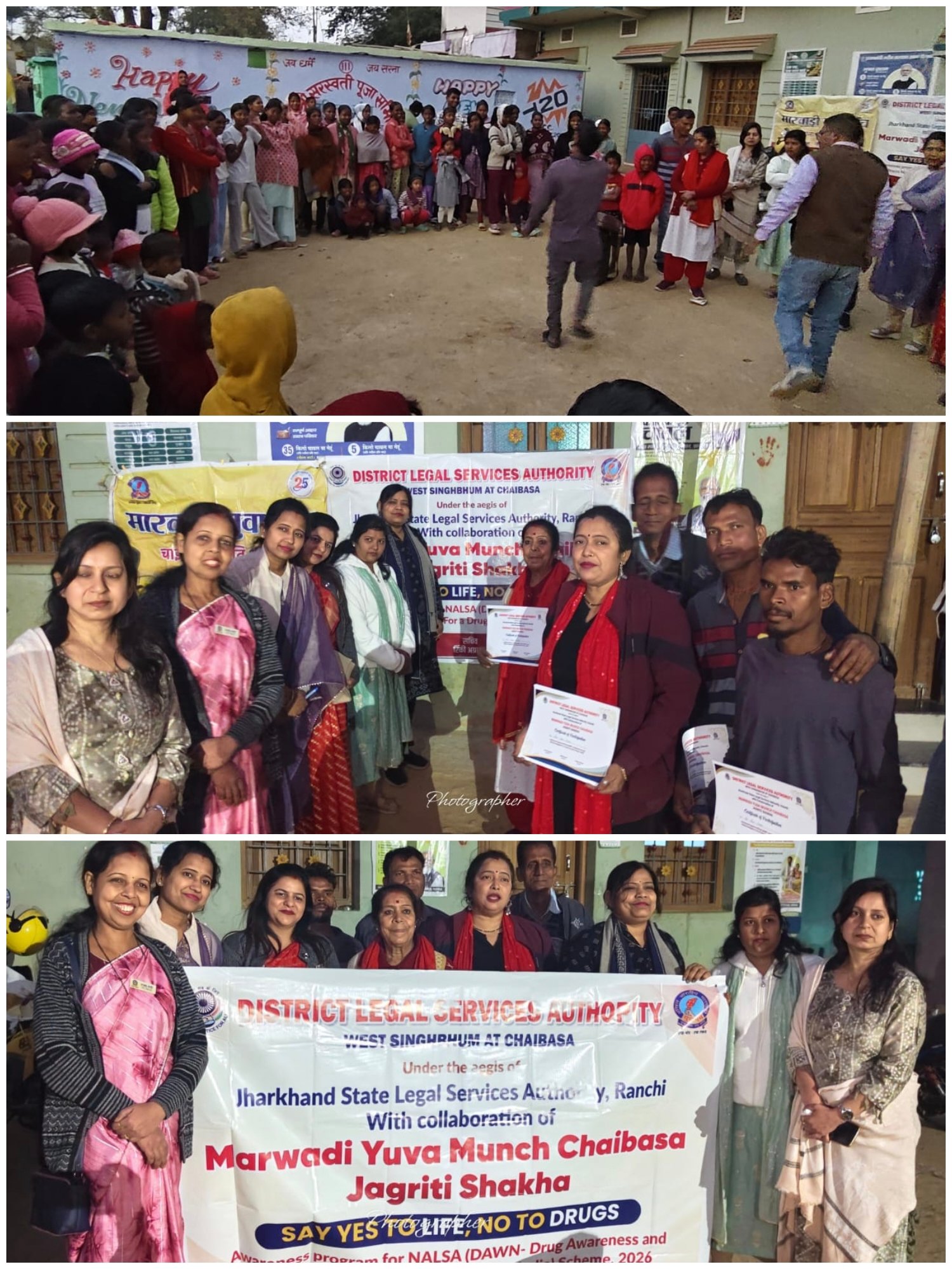 चाईबासा: जिला विधिक सेवा प्राधिकार (डालसा) चाईबासा की प्रेरणा से संयुक्त उपक्रम में मारवाड़ी युवा मंच चाईबासा जागृति शाखा की ओर से नशा मुक्ति जागरूकता अभियान के तहत मेरी टोला, चाईबासा में नुक्कड़ नाटक का आयोजन किया गया।