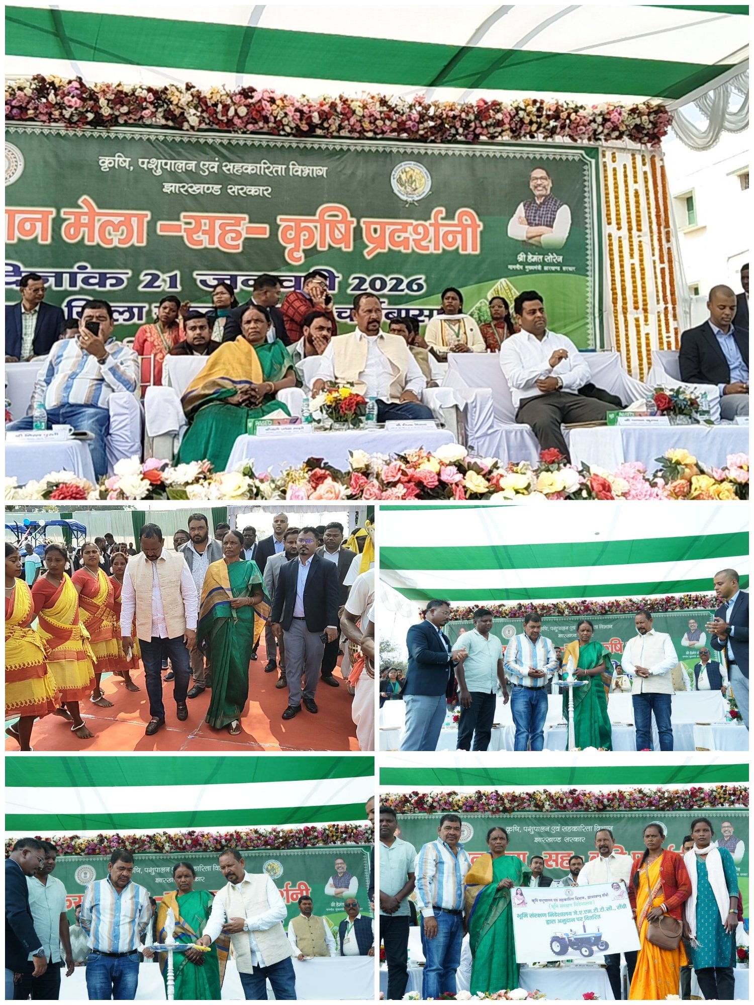 चाईबासा: पश्चिमी सिंहभूम जिले के मुख्यमंत्री उत्कृष्ट +2 जिला उच्च विद्यालय, चाईबासा के मैदान में कृषि, पशुपालन एवं सहकारिता विभाग, झारखंड के सौजन्य से जिला स्तरीय एक दिवसीय किसान मेला सह कृषि प्रदर्शनी का आयोजन बुधवार को किया गया। कार्यक्रम का उद्घाटन झारखंड सरकार के राजस्व एवं भूमि सुधार और परिवहन मंत्री दीपक बिरुवा, सिंहभूम सांसद जोबा माझी, मंझगांव विधायक निरल पूर्ति, मनोहरपुर विधायक जगत माझी, उपायुक्त चंदन कुमार और उप विकास आयुक्त उत्कर्ष कुमार द्वारा दीप प्रज्वलित कर किया गया।