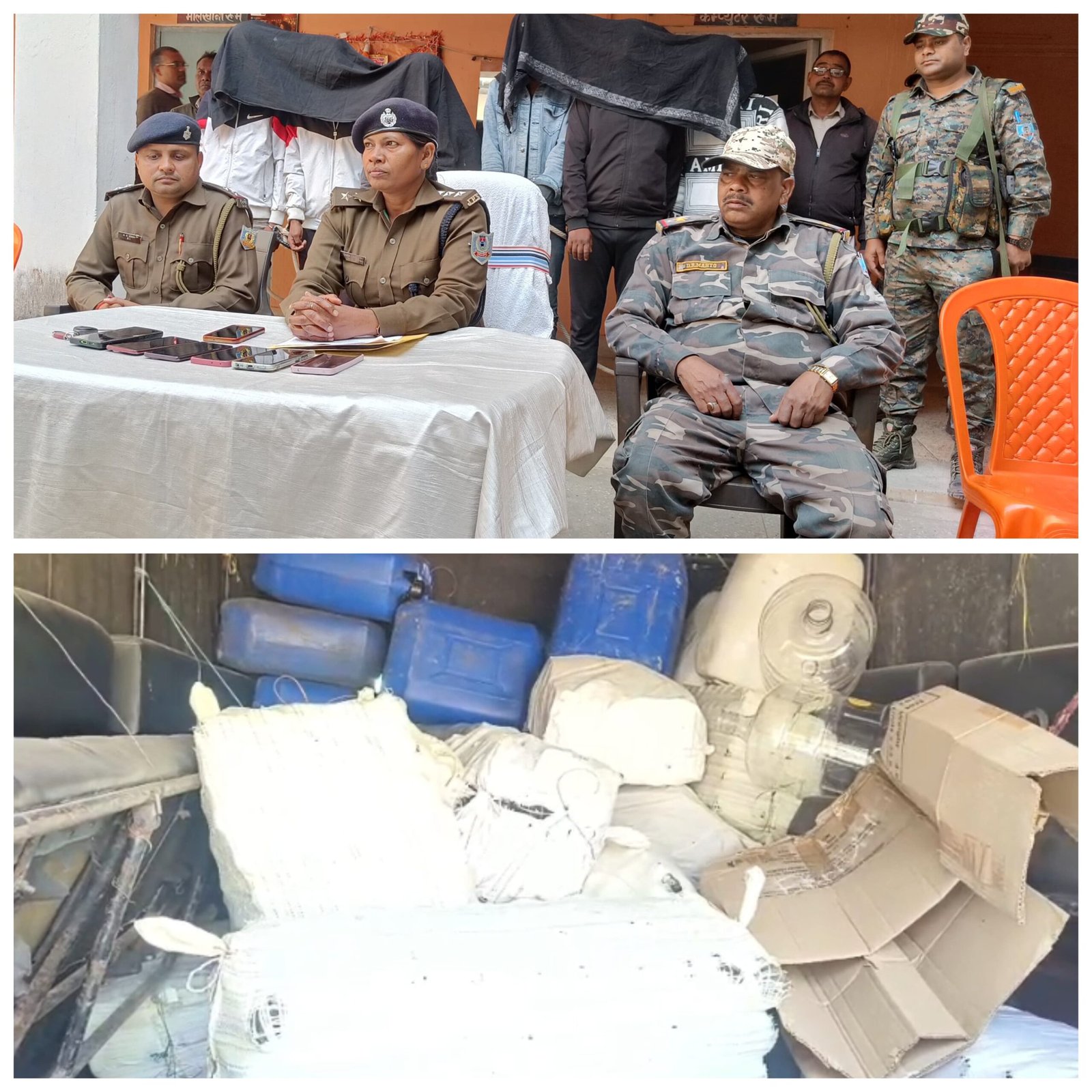 चतरा।इटखोरी थाना क्षेत्र के गुल्ली पार गढ़ा में पुलिस ने बड़ी कार्रवाई करते हुए अवैध मिनी शराब फैक्ट्री का भंडाफोड़ किया है। इस संबंध में डीएसपी अमिता लकड़ा ने प्रेस कॉन्फ्रेंस कर बताया कि चतरा पुलिस अधीक्षक सुमित अग्रवाल को सूचना मिली थी कि गुल्ली से चौपारण की ओर अवैध अंग्रेजी शराब लदी गाड़ी जा रही है। सूचना मिलते ही त्वरित कार्रवाई करते हुए इटखोरी के नंगवा पुल के पास सघन वाहन जांच अभियान चलाया गया। जांच के दौरान एक काले रंग की हुंडई वेन्यू कार और बिना नंबर की सफेद रंग की फ्रॉन्क्स कार को रोका गया। तलाशी पर दोनों गाड़ियों से कुल 16 पेटी अवैध अंग्रेजी शराब बरामद की गई।प्रतिष्ठित ब्रांड की नकल करते थे, मौके से अवैध शराब ले जाने में वाले छह लोगों को गिरफ्तार किया गया।रॉयल चैलेंजर कंपनी का करीब 250 पीस ढक्कन, आईकॉनिक कंपनी का करीब 250 पीस ढकन, रॉयल स्टैग कंपनी का एक बंडल स्टीकर, सिग्नेचर कंपनी का एक बंडल स्टीकर, आईकॉनिक कंपनी का एक बंडल स्टीकर, रॉयल चैलेंजर कंपनी का 250 पीस ढक्कन, ब्लेंडर प्राइड कंपनी का एक बंडल स्टीकर तीन पारदर्शी 20 लीटर के जगह में रखा स्पीड करीब 60 लीटर, एक नीला रंग का ड्रम जिसमें नल लगा हुआ है, प्लास्टिक के बोरा में रखा करीब 1000 पीस खाली शिक्षा कब बोतल, एक पांच लीटर का सफेद रंग का जार में जिसमें करीब 2 लीटर शराब बनाने वाला लिक्विड, अभियुक्त के नाम से 60 विभिन्न कंपनियों का स्क्रीन टच मोबाइल समेत अन्य सामग्री बरामद की गई, जिससे अवैध मिनी शराब फैक्ट्री के संचालन का खुलासा हुआ। डीएसपी अमिता लकड़ा ने बताया कि जब्त शराब में सिग्नेचर, आइकोनिक व्हाइट, ब्लेंडर्स प्राइड, रॉयल स्टैग, रॉयल चैलेंजर सहित विभिन्न ब्रांड शामिल हैं। गिरफ्तार आरोपियों मेंगिरफ्तार अभियुक्तों का नाम (1) नीतीश कुमार यादव उम्र 25 वर्ष पिता छतर यादव ग्राम गली पारगडा थाना इटखोरी (2) संजय यादव उम्र 22 वर्ष पिता रोहित यादव बारीसखी (3) सौरभ कुमार दांगी उम्र 19 वर्ष पिता उपेंद्र दांगी ग्राम सिंदवारी दोनों थाना गिद्धौर (4) अभिषेक कुमार राणा उम्र 25 वर्ष पिता रामभरोस राणा ग्राम बेलखोरी मयूरहंड थाना, (5) सतीश कुमार रजक उम्र 21 वर्ष पिता बाबूलाल रजक ग्राम परोरिया मयूरहंड थाना,(6) टिंकू रविदास उम्र 25 वर्ष पिता विराज रविदास माधोपुर इटखोरी थाना का नाम शामिल है। पुलिस ने इस संबंध में इटखोरी थाना में उत्पाद अधिनियम धाराओं में मामला दर्ज कर सभी आरोपियों को न्यायिक हिरासत में भेज दिया है। डीएसपी अमिता लकड़ा ने कहा कि जिले में अवैध शराब और अन्य आपराधिक गतिविधियों के खिलाफ सख्त अभियान आगे भी जारी रहेगा। कार्रवाई में छापामारी दल में इटखोरी थाना प्रभारी अभिषेक कुमार सिंह, मयूरहंड थाना प्रभारी आशिष प्रसाद, एएसआई पंकज कुमार, एएसआई भगवान 
