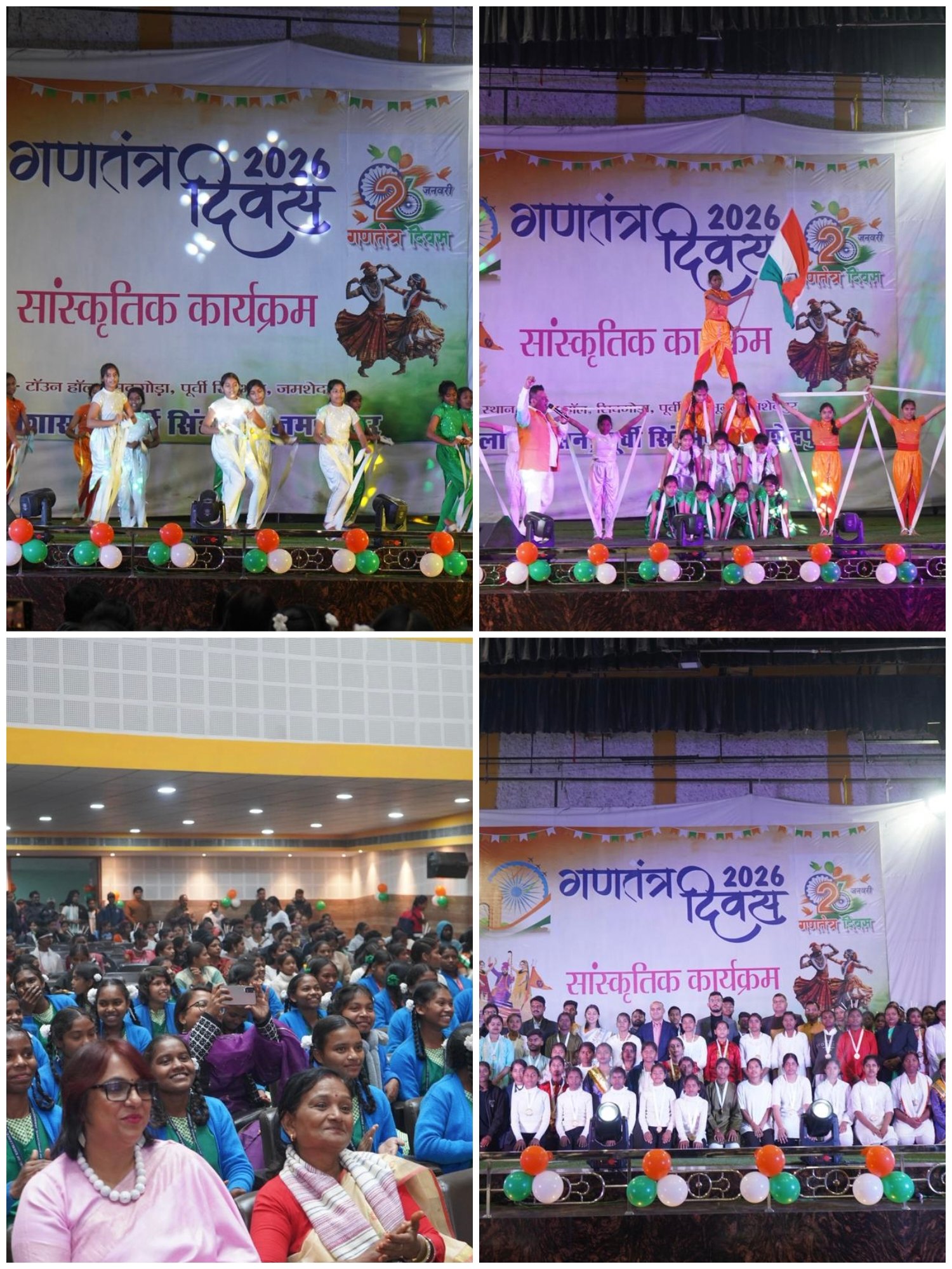 जमशेदपुर। गणतंत्र दिवस की पूर्व संध्या के अवसर पर रविवार को सिदगोड़ा टाउन हॉल में जिला प्रशासन, पूर्वी सिंहभूम की ओर से देशभक्ति गीतों एवं नृत्यों से ओतप्रोत एक भव्य सांस्कृतिक संध्या का आयोजन किया गया। कार्यक्रम में जिले के विभिन्न विद्यालयों के छात्र-छात्राओं ने आकर्षक और रंगारंग सांस्कृतिक प्रस्तुतियां देकर उपस्थित दर्शकों को मंत्रमुग्ध कर दिया।