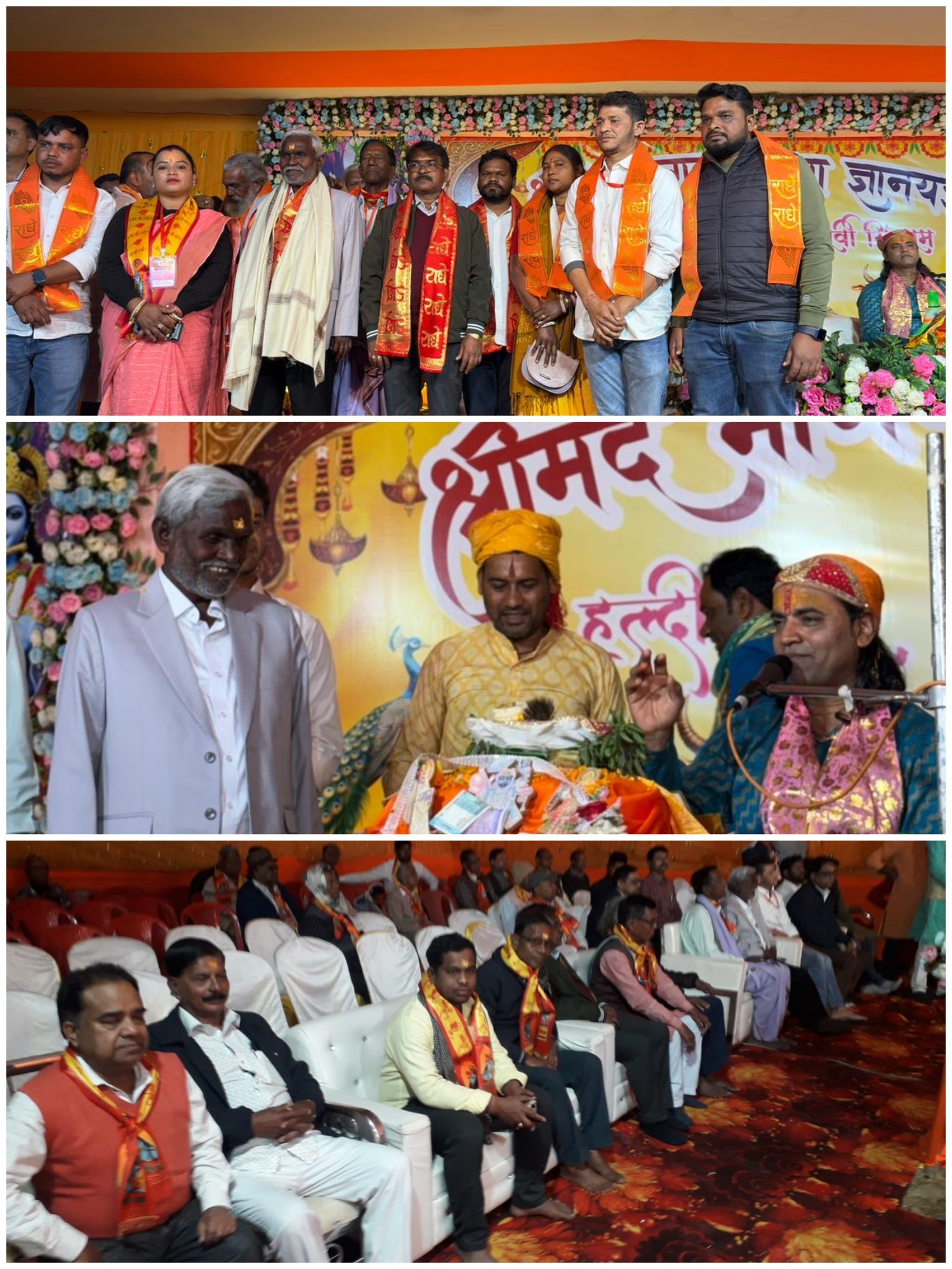 व्यास पीठ पर झारखंड के पूर्व मुख्यमंत्री चंपई सोरेन भागवत का आशीर्वाद लेते हुए कहां भागवत सनातन धर्म की कुंजी है। इसमें कही गई बातों को संसार पर अमल में लाने की जरूरत है। मनुष्य हर दिन नहीं रहता लेकिन कृति रह जाती है। इस मौके पर हजारों की संख्या में श्रद्धालु उपस्थित रहे।
