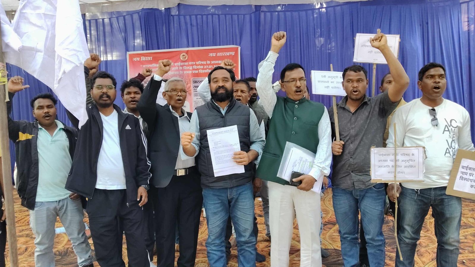 नगर परिषद अध्यक्ष पद अनारक्षित किए जाने के विरोध में झारखंड बचाओ जनसंघर्ष मोर्चा का धरना
