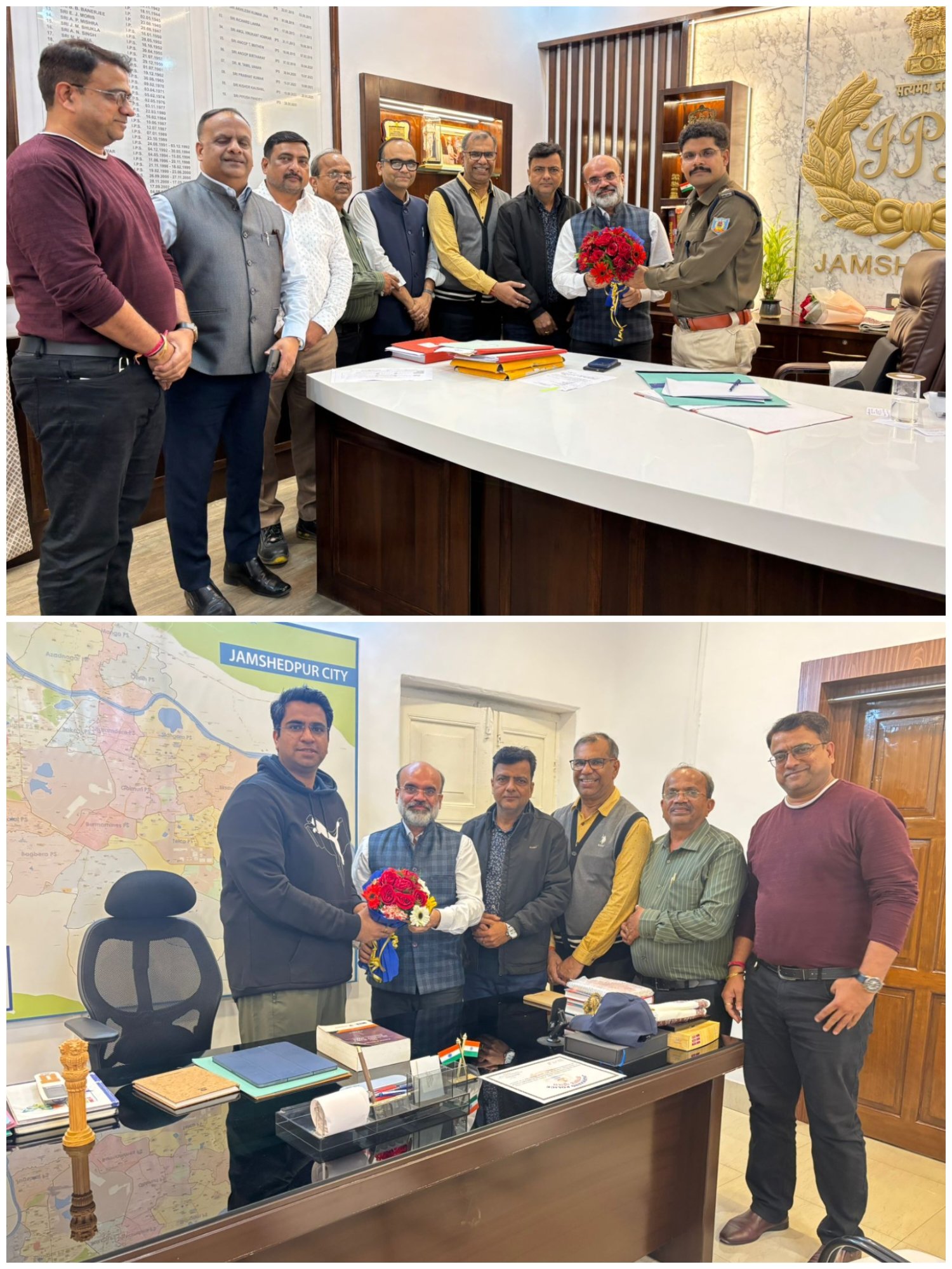 कैरव गांधी की सकुशल वापसी पर सिंहभूम चैम्बर के प्रतिनिधिमंडल ने वरीय पुलिस अधीक्षक पीयूष पांडेय,भा.पु.से. एवं सिटी पुलिस अधीक्षक कुमार शिवाशीष एवं इस कार्य में लगे पुलिस बल के जवानों को बधाई दी एवं धन्यवाद प्रेषित किया।