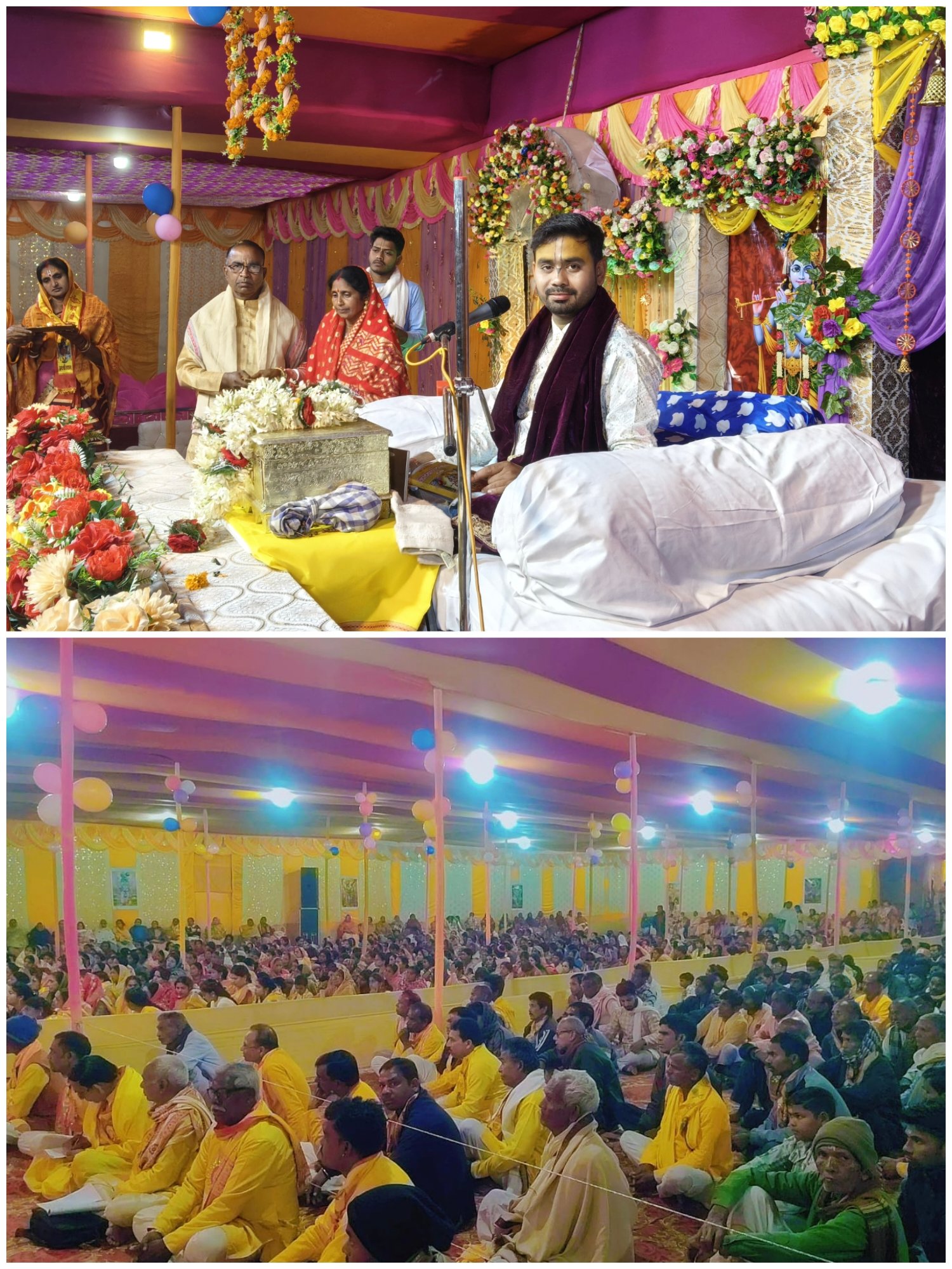 कोवाली थाना के मुहूलड़िहा गांव में श्री श्री राधा गोविंद भागवत सेवा संघ दक्षिण पोटका की ओर से सात दिवसीय श्रीमद् भागवत कथा भक्ति सह ज्ञान यज्ञ कि पंचम दिवसीय बुधवार के प्रवचन की शुरुआत भागवत भगवान की आरती, मंगलाचरण एवं संकीर्तन के साथ शाम 5 बजे आरंभ हुई। जिसमें कथावाचक गोविंद दास शास्त्री जी महाराज ने कथा में श्रोताओं को त्रिनावद्ध वोध , वृंदावन गमन, माखनचोरी लीला, गोवर्धन लीला ,अरिष्ठासुर, बकासुर अधासुर वोध, कालिया दमन, चिरहरण ,कात्यायनी पूजन, बेनु गीत, गोपी गीत, गोवर्धन पूजन, महाराश, झूलन ,होली आदि प्रसंग पर चर्चा करते हुए बताएं की हम जितना प्रयास दुनिया या अपनों को खुश करने के लिए करते हैं उससे आधा प्रयास भी अगर भगवान को खुश करने के लिए करें तो हमारे प्रभु खुश हो जाएंगे और यह पोटका क्षेत्र वृंदावन धाम में परिणत हो जाएगा।
