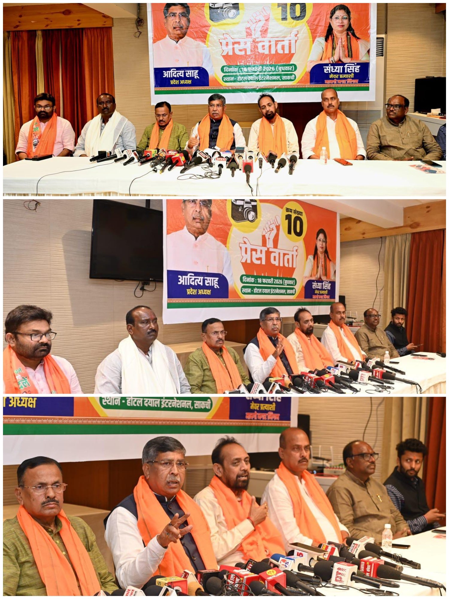 जमशेदपुर। साकची स्थित एक होटल में बुधवार को आयोजित प्रेस वार्ता में झारखंड भाजपा के प्रदेश अध्यक्ष सह राज्यसभा सांसद Aditya Sahu ने राज्य सरकार पर तीखा हमला बोला। उन्होंने आरोप लगाया कि सरकार की मंशा शुरू से ही नगर निकाय, नगर परिषद और नगर पंचायत चुनाव कराने की नहीं थी और पिछले तीन वर्षों से जानबूझकर चुनाव टाले जाते रहे। उन्होंने कहा कि भाजपा कार्यकर्ताओं ने राज्य की 48 नगर निकायों में आंदोलन और प्रदर्शन कर सरकार को चुनाव कराने पर मजबूर किया, किंतु सरकार की नीयत अब भी साफ नहीं है।