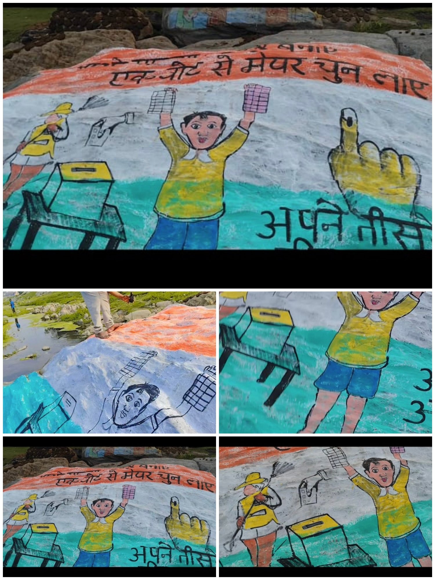 स्थानीय लोगों ने इस रचनात्मक पहल की सराहना की है। कई राहगीरों ने पत्थरों पर बनी इस अनोखी कला को देखकर कलाकार की सोच और सामाजिक सरोकार की प्रशंसा की। चुनावी माहौल के बीच इस तरह की कलात्मक जागरूकता न केवल आकर्षण का केंद्र बनी है, बल्कि मतदान के महत्व को भी प्रभावी ढंग से जन-जन तक पहुंचा रही है।