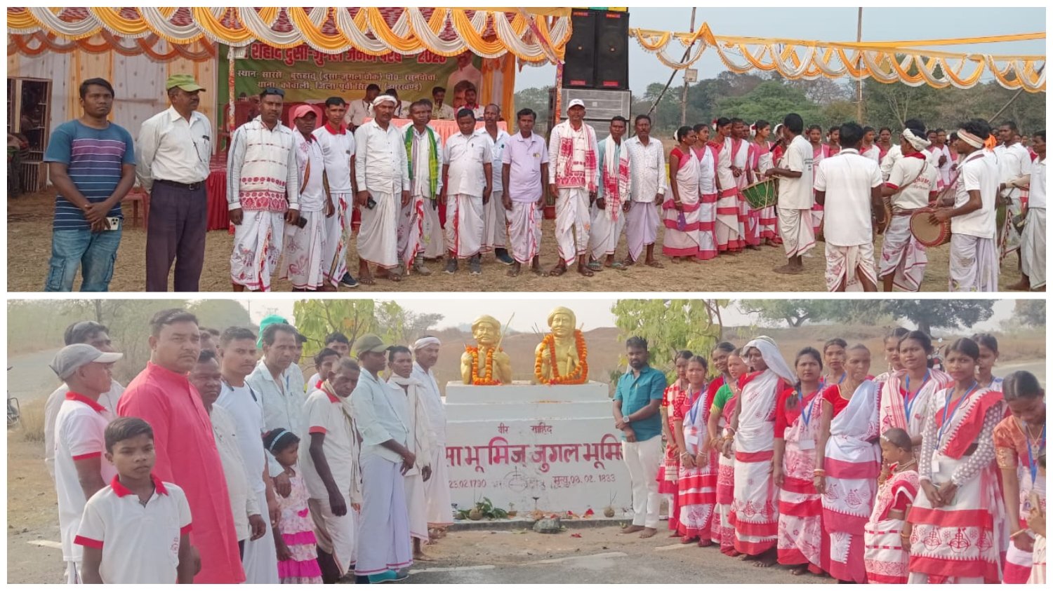 पोटका के सारसे बुरुहातु गांव में शहीद दूसरा युगल स्मारक समिति के द्वारा वीर सहीद दूसा- जुगल का 236 वां जन्म जयंती पर दो दिवसीय सांस्कृतिक कार्यक्रम सह स्पोर्ट का आयोजन हुआ। इस कार्यक्रम में मुख्य अतिथि के रूप में पोटका विधायक संजीव सरदार उपस्थित हुए। अतिथि के रूप में सिद्धेश्वर सरदार, हरीश भूमिज, जयपाल सिंह सरदार, मानिक सरदार व अन्य उपस्थित रहे। कार्यक्रम में सर्वप्रथम सारसे -बुरुहातु चौक में स्थित वीर शहीद दुसा -जुगल के मूर्ति पर मुख्य अतिथि के रूप में उपस्थित विधायक संजीव सरदार एवं समाज के लोग के द्वारा मल्लार्पण करते हुए पारंपरिक विधि विधान के साथ श्रद्धा पूर्वक पूजा अर्चना किया गया। जीसके पश्चात अखाड़ा में कई संस्कृति टीमों के द्वारा अपना पारंपरिक वेशभूषा में सांस्कृतिक नित्य प्रस्तुत किया गया ओर और नित्य में प्रथम स्थान, द्वितीय एवं तृतीय स्थान लेने वाला नित्य दलों को सम्मान पूर्वक पुरस्कृत किया गया । इस मौके पर कमेटी के हिमांशु सरदार, हरीश सरदार, भुवनेश्वर सरदार, विशेश्वर सरदार, लक्ष्मी राम सरदार, चंद्र मोहन सरदार, विश्वनाथ सरदार, डुरेंद्र सरदार ,प्रेमचंद सरदार, जय सिंह सरदार, हरे मोहन सरदार ,संजय सरदार, सोनाराम सरदार, दशरथ सरदार, दिनेश्वर सरदार, मालू सरदार, रासमोहन सरदार, सूरजमनी सरदार, बहुत बहन है पिंकी सरदार ,वाले सरदार, सिमती सरदार, लमूना सरदार, शीतल सरदार आदि के साथ बड़ी संख्या में ग्रामीण उपस्थित रहे।