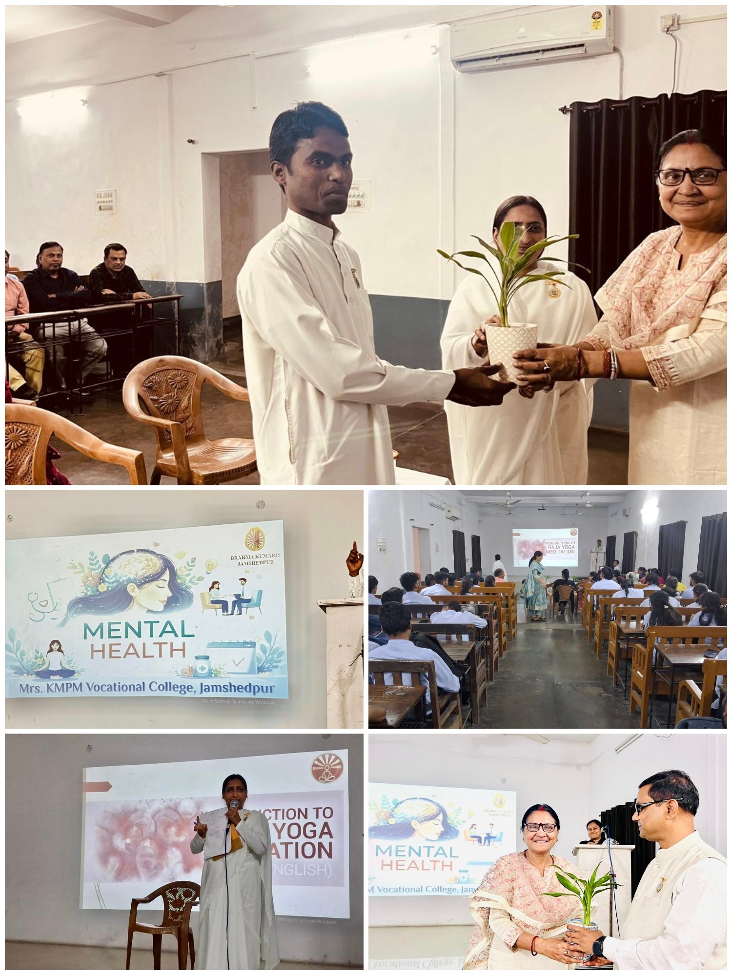 जमशेदपुर। शहर के एम आरएस केएमपीएम व्यावसायिक महाविद्यालय में शुक्रवार को मानसिक एवं भावनात्मक स्वास्थ्य विषय पर एक प्रेरणादायी संगोष्ठी का आयोजन किया गया। कार्यक्रम का आयोजन प्राचार्या रीता बहन के सहयोग से किया गया, जिसमें स्नातक के विद्यार्थियों के साथ-साथ महाविद्यालय के फैकल्टी सदस्य भी शामिल हुए।