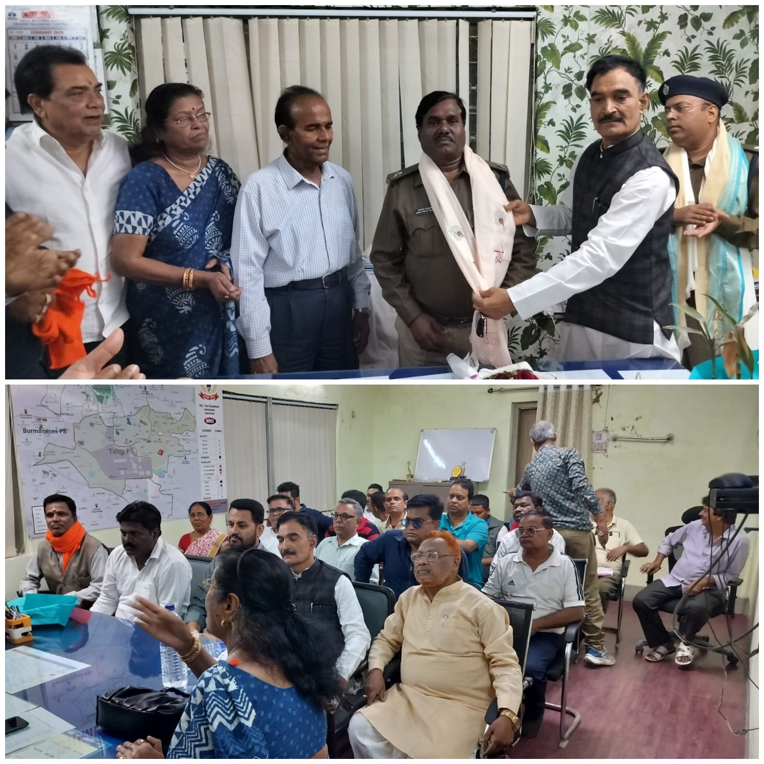 जमशेदपुर।टेल्को थाना शांति समिति के सदस्यों ने आज टेल्को थाना में पदस्थापित नए थाना प्रभारी जादूगोड़ा के पूर्व सर्किल इंस्पेक्टर रमेश प्रसाद को पुष्प गुच्छ एवं उप वस्त्र प्रदान कर थाना परिसर में जोरदार अभिनंदन किया। साथ ही पूर्व थाना प्रभारी वरीय पुलिस निरीक्षक प्रशांत कुमार को अंग वस्त्र एवं पुष्प हार पहनाकार भावपूर्ण विदाई दी।साथ ही उनके विगत कार्यकाल के दौरान क्षेत्र में किए गए कार्यों को याद कर थाना शांति समिति के तमाम सदस्यों ने इस पल को अपने स्मृति में संयोजन करने का प्रयास किया। साथ ही उनके सफल कार्यकाल के लिए संवाद,सहमति और सहकार से क्षेत्र में शांति व्यवस्था बनाए रखने के लिए किए गए कार्यों का उल्लेख करते हुए कृतज्ञता प्रकट की एवं नए थाना प्रभारी को आने वाले समय के लिए शुभ कामनाएं दी। इस अवसर पर पर विशेष रूप से केंद्रीय शांति समिति की ओर से नंदलाल सिंह, ओम प्रकाश उपाध्याय, प्रदीप कुमार दास, डीडी त्रिपाठी, श्रीमती कल्याणी कल्याणी शरण , आमीर सोहेल,आमिर अली अंसारी ओम प्रकाश सिंह, आलम ताज, उपेंद्र तिवारी, लैला तिवारी ,अजय सिंह ,अभय सिंह, संजय तिवारी,अलम ताज, शहीद परवेज,रितेश शरण अभय मैथी, जीतू सिंह, विकाश सिंह, रजत कुमार आदि उपस्थित थे।