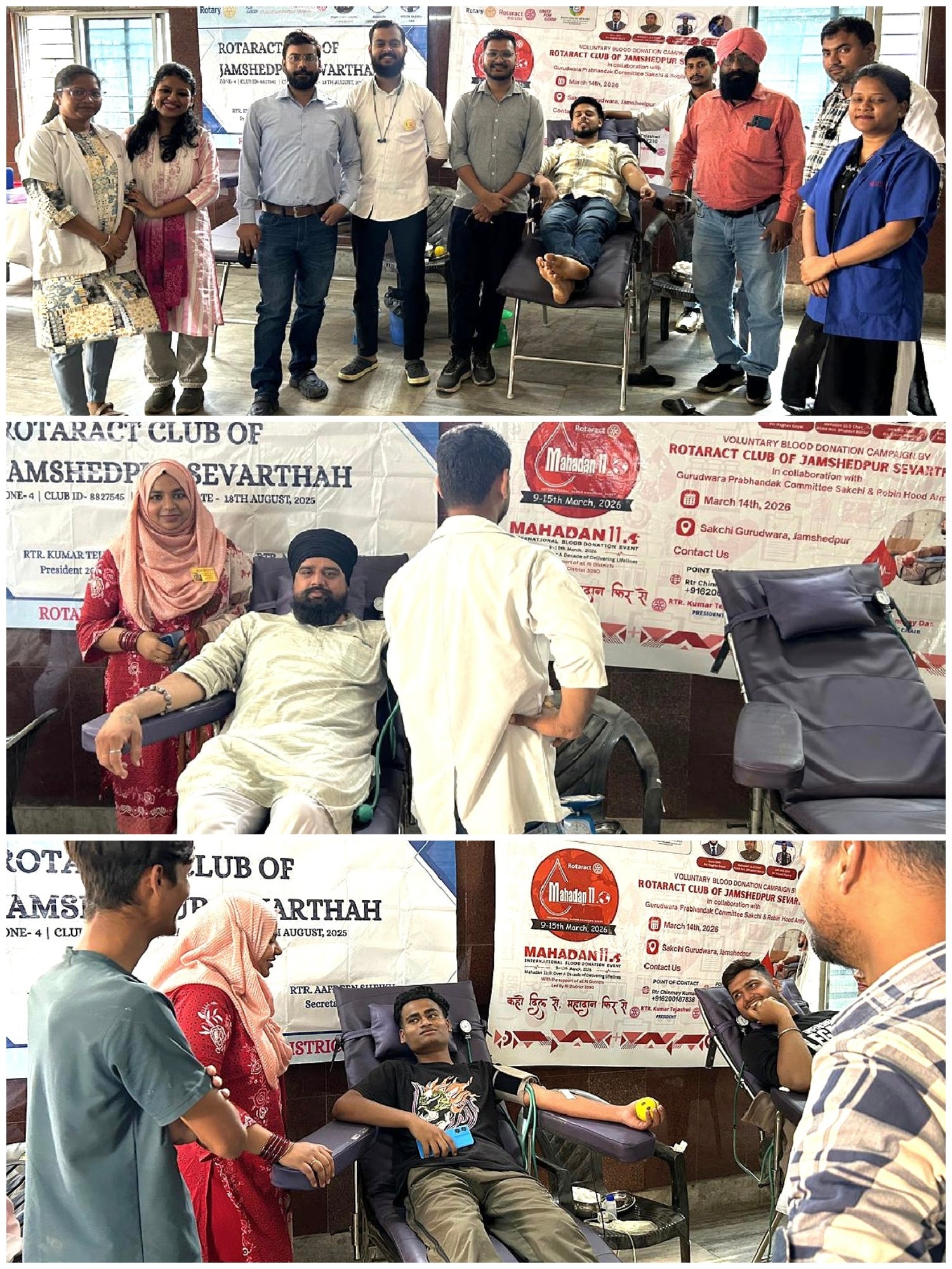 शिविर में गुरुद्वारा प्रबंधक कमिटी के प्रधान सरदार निशान सिंह के अलावा कमिटी के सदस्य सतनाम सिंह घुम्मन, हरविंदर सिंह, जसबीर सिंह गांधी और मनोहर सिंह मित्ये उपस्थित रहे। वहीं रोट्रैक्ट क्लब ऑफ जमशेदपुर की ओर से अध्यक्ष कुमार तेजश्वी, सचिव आफरीन शेख, चिन्मय दास तथा सेवार्थ परिवार के सदस्यों ने शिविर को सफल बनाने में महत्वपूर्ण योगदान दिया। बताते चलें कि रोट्रैक्ट क्लब ऑफ जमशेदपुर द्वारा 9 मार्च से 15 मार्च तक रक्तदान की विशेष मुहिम “महादान 11.0” के तहत विभिन्न स्थानों पर रक्तदान शिविरों का आयोजन किया जा रहा है, जिसका उद्देश्य अधिक से अधिक लोगों को रक्तदान के लिए प्रेरित करना और जरूरतमंदों को जीवनदान देना है।