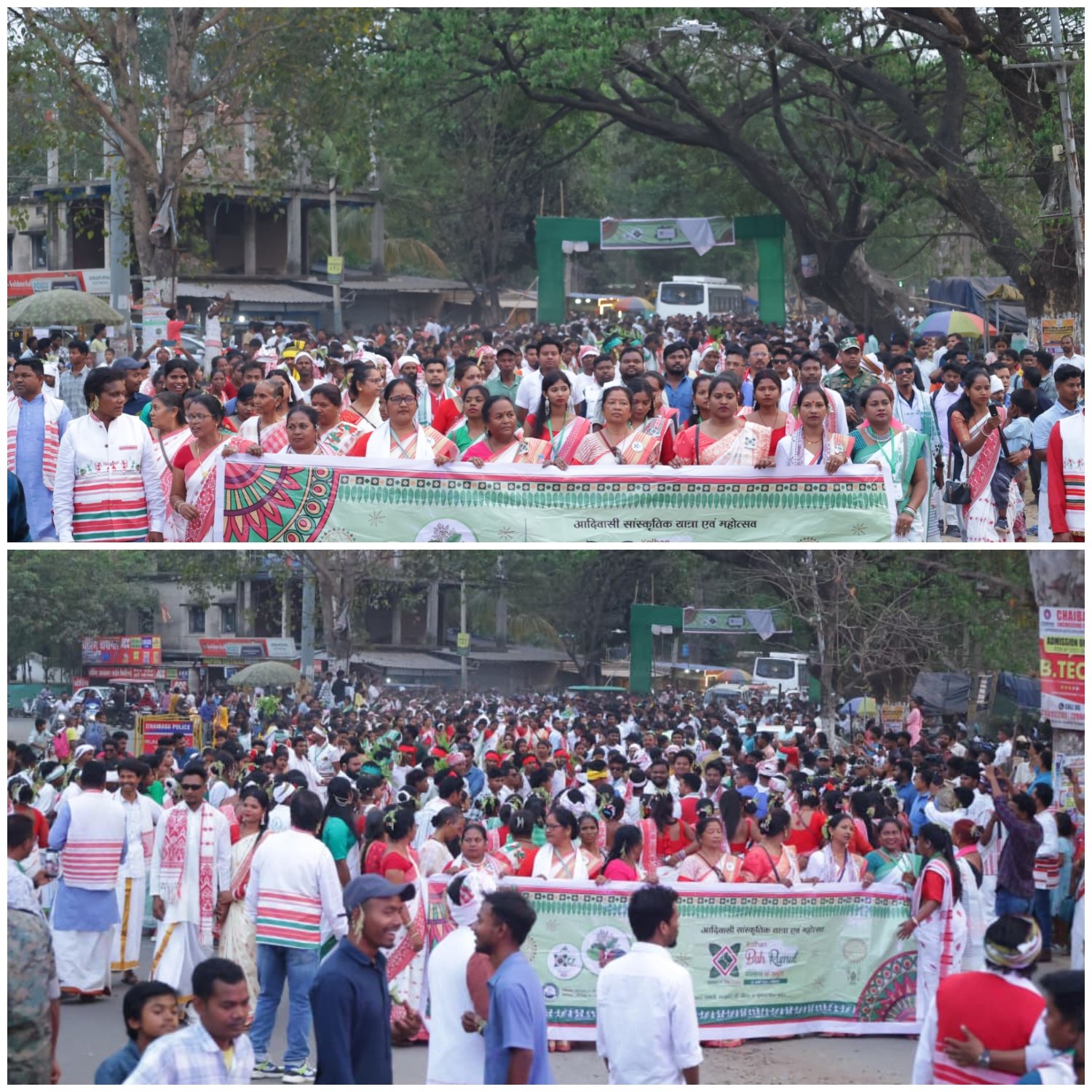 चाईबासा: क्षेत्र के आदिवासी हो समाज की पारंपरिक संस्कृति, प्रकृति-पूजा और विलुप्त होती परंपराओं को संरक्षित करने के उद्देश्य से आयोजित “कोल्हान बह रुमुल सह सांस्कृतिक यात्रा” का भव्य समापन खूंटकट्टी मैदान, चाईबासा में हुआ। कोल्हान हो फिल्म्स एंड म्यूजिक एसोसिएशन के तत्वावधान में आयोजित इस कार्यक्रम में हजारों आदिवासी पुरुष और महिलाओं ने पारंपरिक वेश-भूषा, वाद्य यंत्रों और उत्साह के साथ भाग लिया।