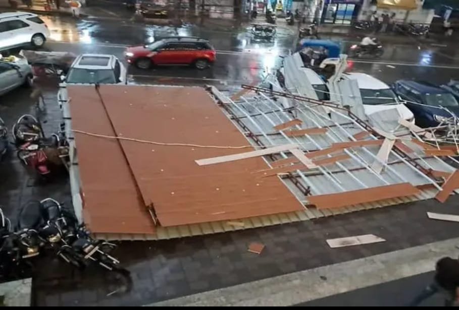 प्रत्यक्षदर्शियों के अनुसार, शेड गिरने से नीचे खड़ी चार कारें और छह दोपहिया वाहन क्षतिग्रस्त हो गए। तेज हवा और वज्रपात के दौरान यह घटना हुई, जिससे इलाके में कुछ देर के लिए अफरा-तफरी मच गई।स्थानीय लोगों का कहना है कि अगर उस समय लोग वाहनों के पास होते तो बड़ा हादसा हो सकता था।