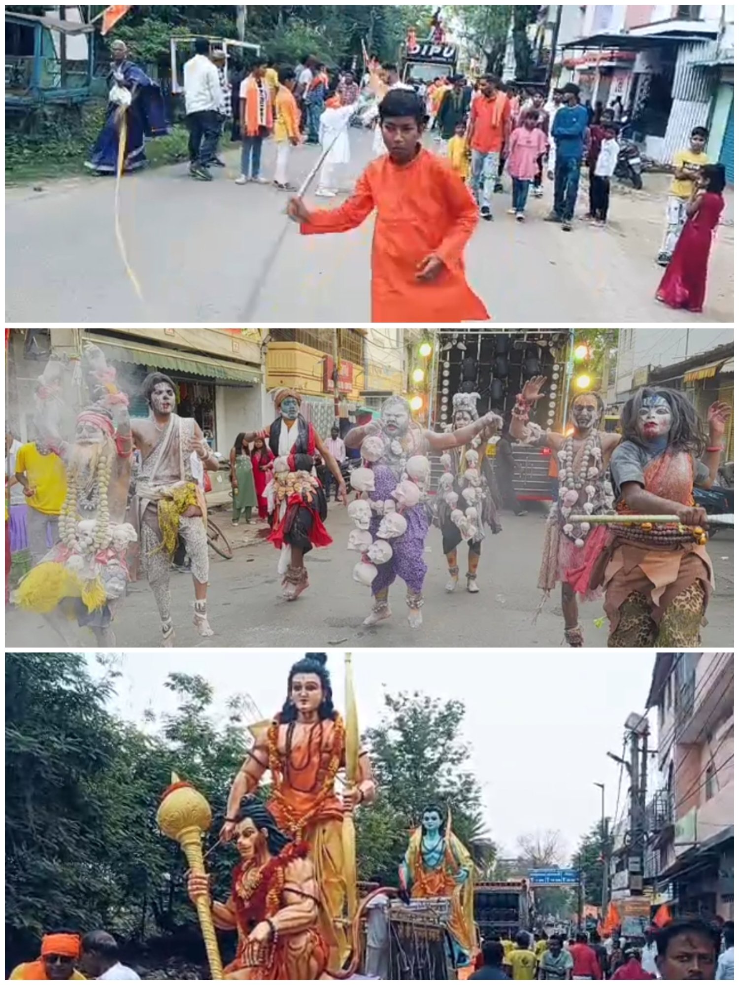 दोपहर बाद शहर में निकाली गई भव्य शोभायात्रा इस आयोजन का मुख्य आकर्षण रही। शोभायात्रा में बाबा मंदिर की सजीव झांकियां, सरस्वती हरि बोल दुर्गा मंदिर अखाड़ा की पारंपरिक कला प्रदर्शन और विभिन्न अखाड़ों की आकर्षक प्रस्तुतियों ने लोगों का मन मोह लिया। भगवान श्रीराम, माता सीता, लक्ष्मण और भगवान हनुमान की जीवंत झांकियों ने श्रद्धालुओं को भावविभोर कर दिया। पूरे मार्ग में “जय श्रीराम” के गगनभेदी नारों से वातावरण गूंजता रहा।
