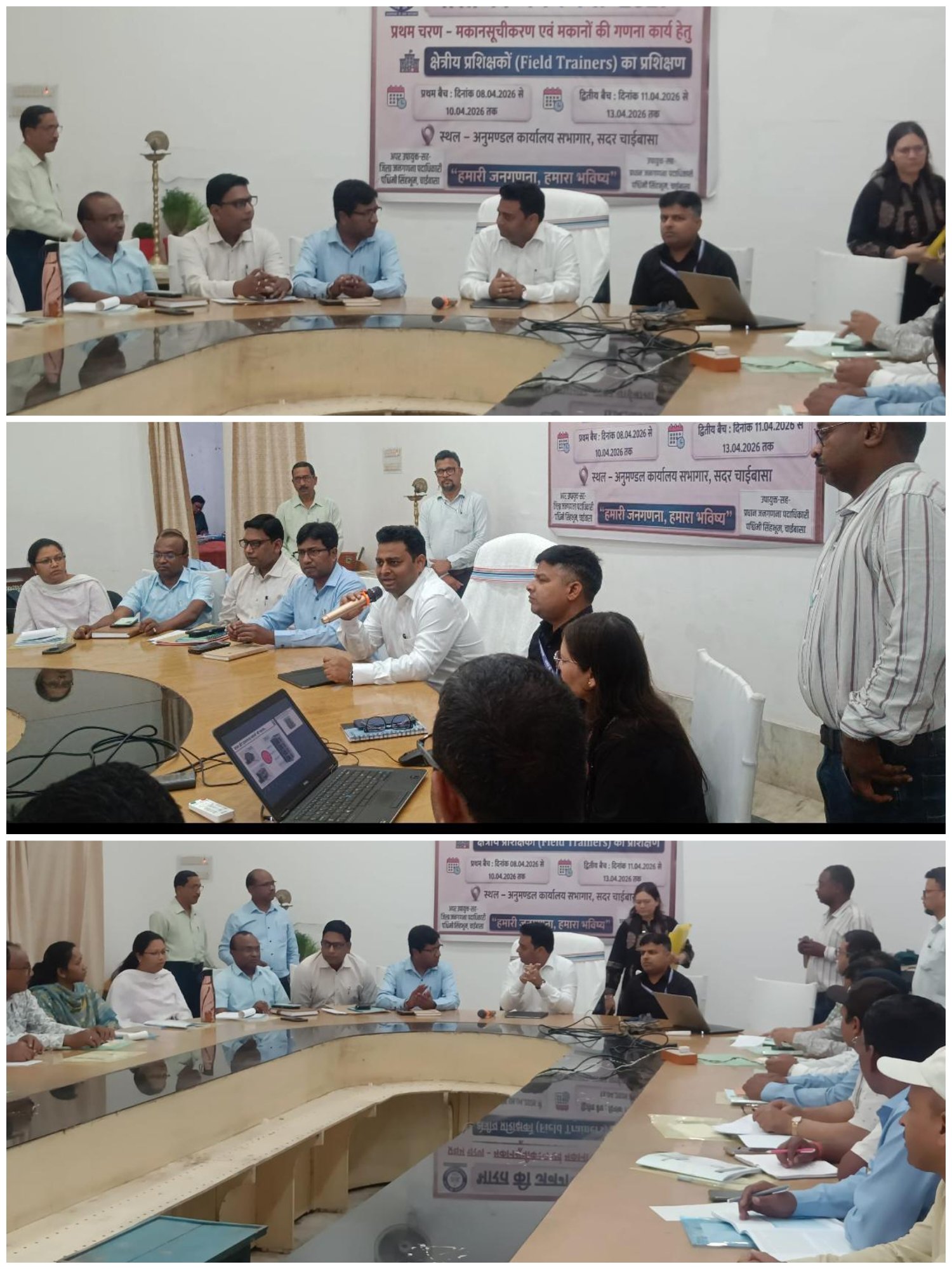चाईबासा: उपायुक्त-सह-प्रधान जनगणना पदाधिकारी चन्दन कुमार की अध्यक्षता में जनगणना 2027 के तहत मकानसूचीकरण एवं मकानों की गणना कार्य के लिए फील्ड ट्रेनरों का प्रशिक्षण कार्यक्रम 8 अप्रैल 2026 से अनुमंडल सभागार, सदर चाईबासा में शुरू हुआ।
