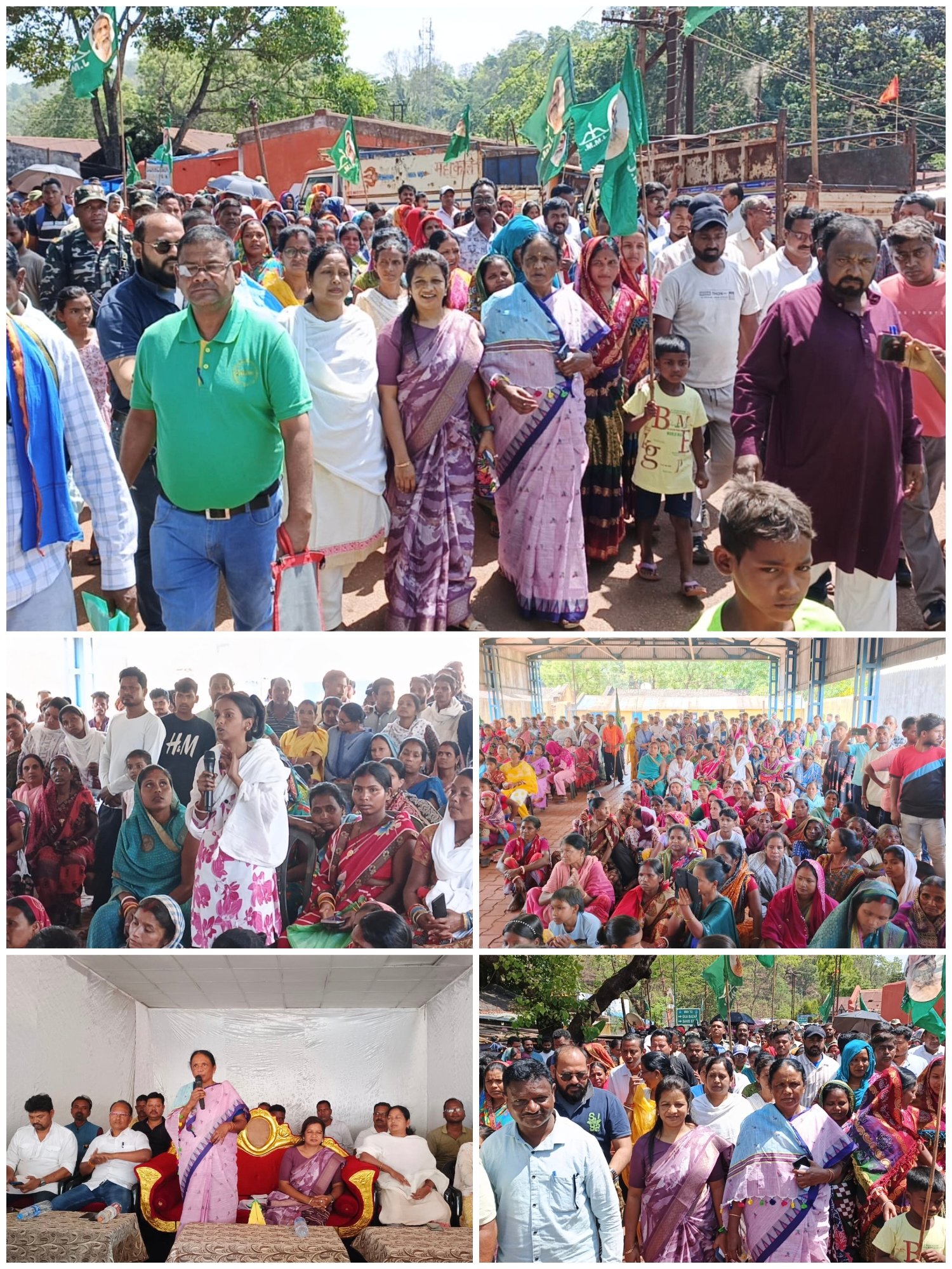 गुवा।पश्चिमी सिंहभूम जिला स्थित नोवामुंडी प्रखंड के गुवा क्षेत्र में विस्थापन के मुद्दे ने अब राजनीतिक रूप ले लिया है। शुक्रवार को सांसद जोबा माझी ने प्रभावित क्षेत्र का दौरा कर विस्थापित परिवारों से मुलाकात की और उनकी समस्याओं को गंभीरता से सुना। इस दौरान झामुमो जिलाध्यक्ष सोनाराम देवगम, जिला सचिव राहुल आदित्य, प्रवक्ता बुधराम लागुरी, जिला परिषद अध्यक्ष लक्ष्मी सुरेन, जिला परिषद सदस्य देवकी कुमारी और स्थानीय मुखिया चाँदमनी लागुरी सहित कई जनप्रतिनिधि मौजूद रहे।