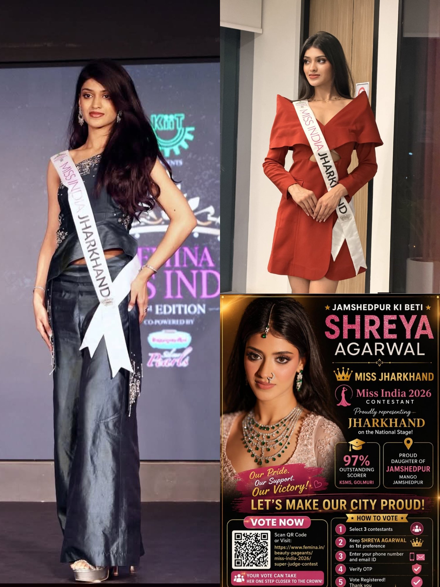 जमशेदपुर। झारखंड के जमशेदपुर की प्रतिभाशाली बेटी श्रेया अग्रवाल ने फेमिना मिस इंडिया झारखंड 2026 का खिताब जीतकर न केवल शहर बल्कि पूरे राज्य का नाम रोशन किया है। उनकी इस उपलब्धि से पूरे जमशेदपुर में खुशी और गर्व का माहौल है।