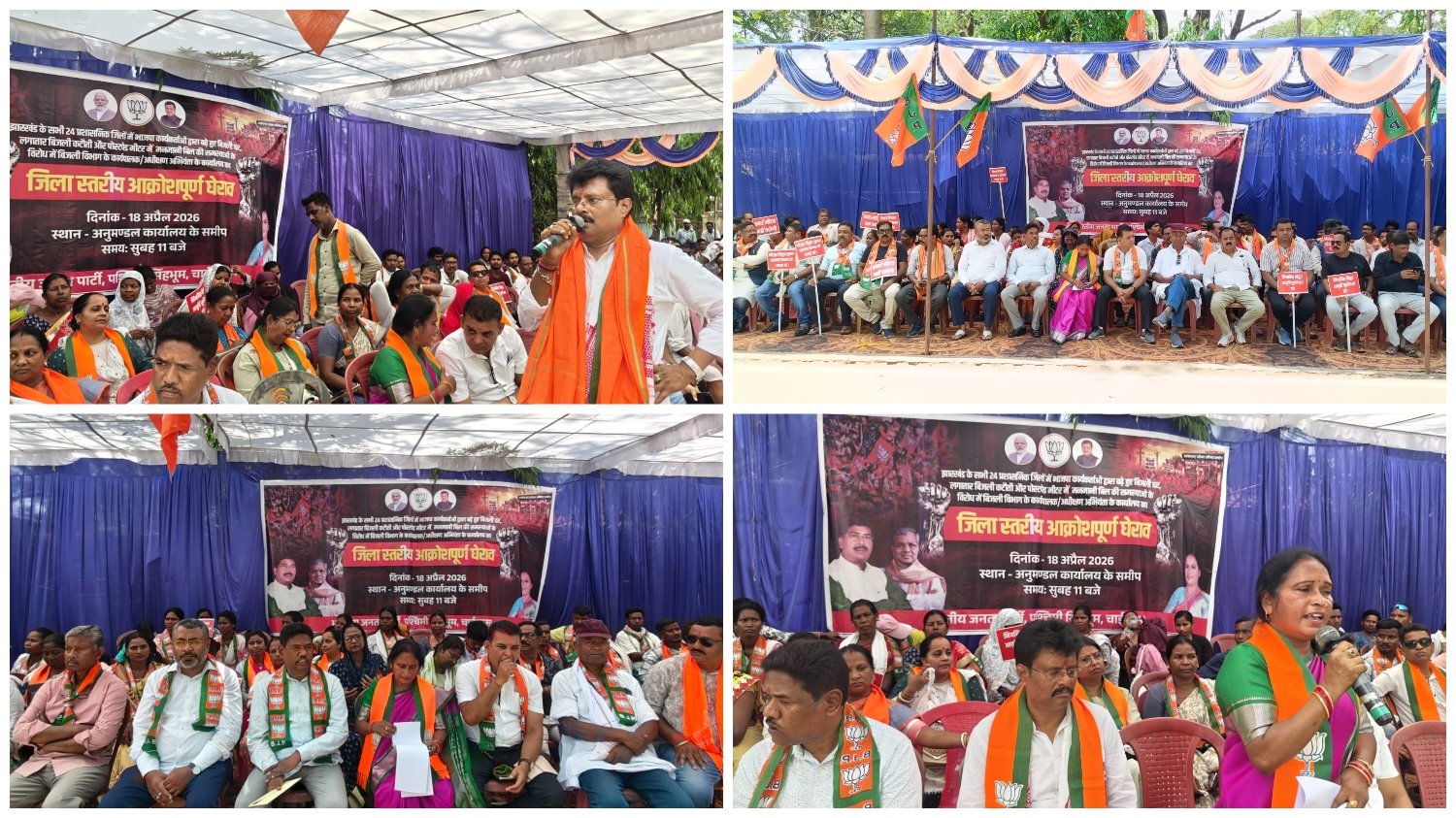 चाईबासा: भारतीय जनता पार्टी के प्रदेश अध्यक्ष आदित्य साहू के निर्देश पर राज्यभर में आयोजित एकदिवसीय धरना-प्रदर्शन के तहत शनिवार को चाईबासा के पुराना डीसी कार्यालय के समीप विरोध प्रदर्शन किया गया। कार्यक्रम की अध्यक्षता भाजपा जिला अध्यक्ष गीता बलमूचु ने की।