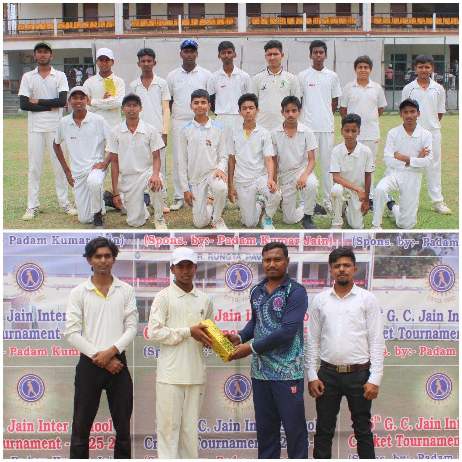 पद्मावती जैन सरस्वती शिशु विद्या मंदिर की ओर से नीलेश कुमार दास ने शानदार गेंदबाजी करते हुए 24 रन देकर 5 विकेट लिए। मयंक पाठक और प्रेम को दो-दो विकेट मिले।